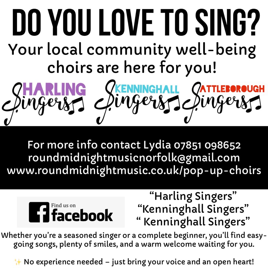 We run three community choirs that rehearse fortnightly- in East Harling, in Kenninghall, and Attleborough, South Norfolk. 🇬🇧
